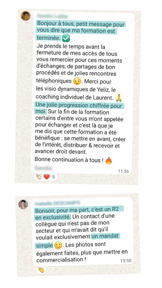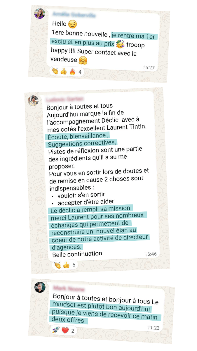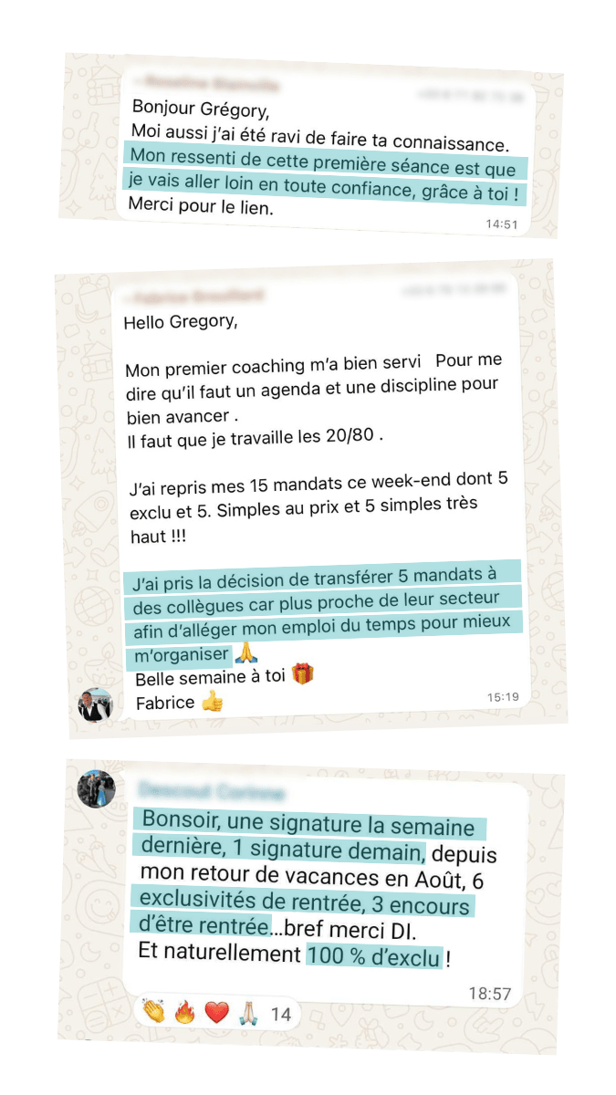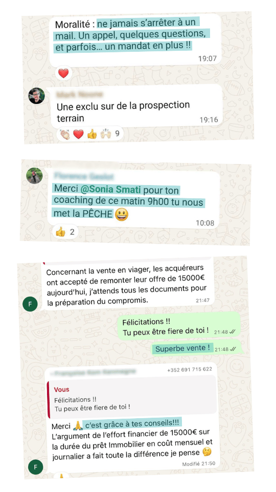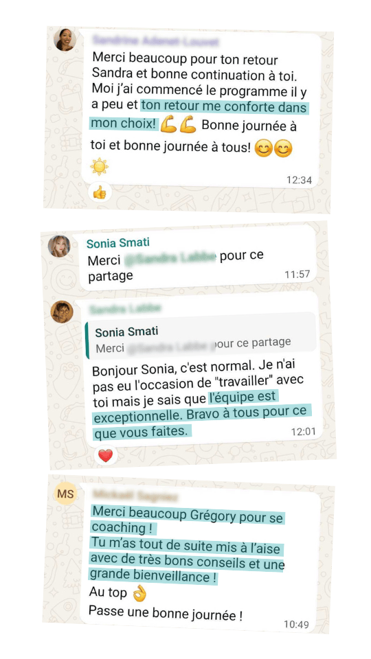 Nos clients nous partagent chaque jour leurs victoires sur WhatsApp.