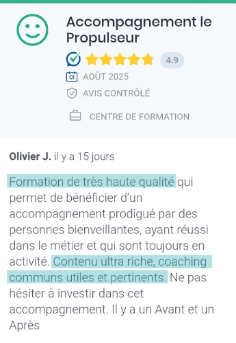 ACCOMPAGNEMENT de nos clients en seulement 6 MOIS !