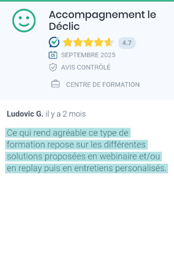 Son plus gros bénéfice : Il a retrouvé de la clarté et structuré son activité pour travailler avec plus d’impact… tout en reprenant du temps pour lui.